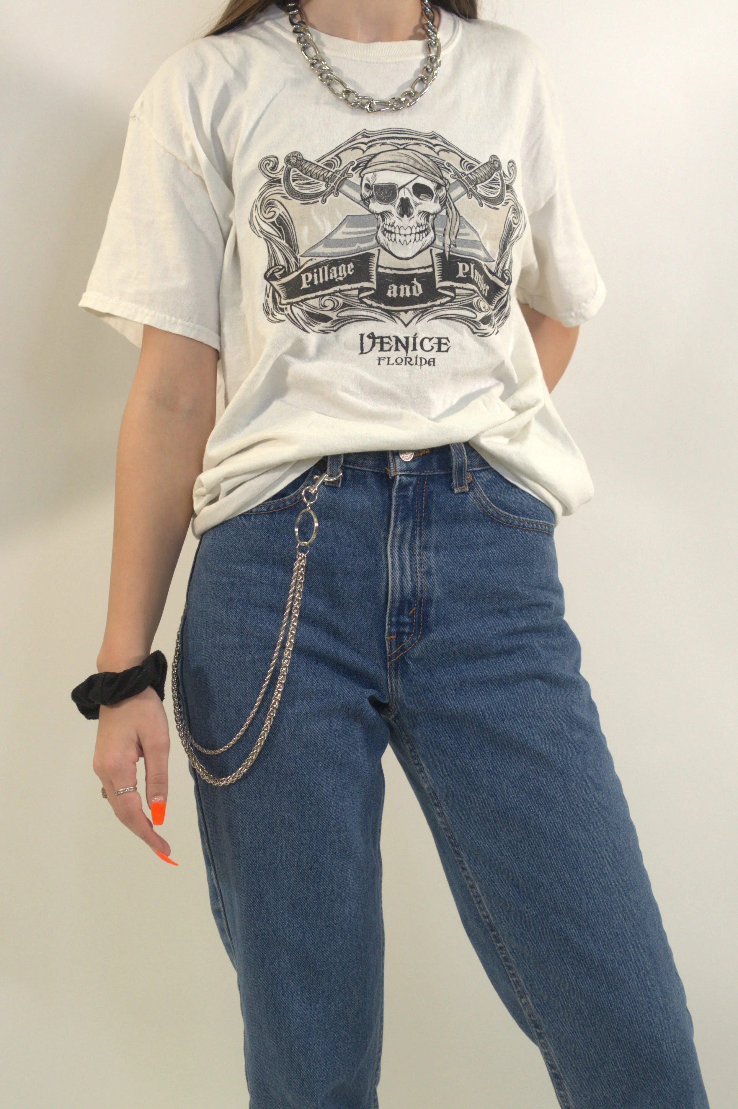 The following example of a minimal wardrobe is made out of basic styling pieces. Many of these basic pieces are wardrobe staples or inexpensive to purchase. The basic pieces pictured are; jeans, a black cropped shirt, a jean jacket, a graphic t-shirt, black leggings, a denim skirt, and sweatpants.