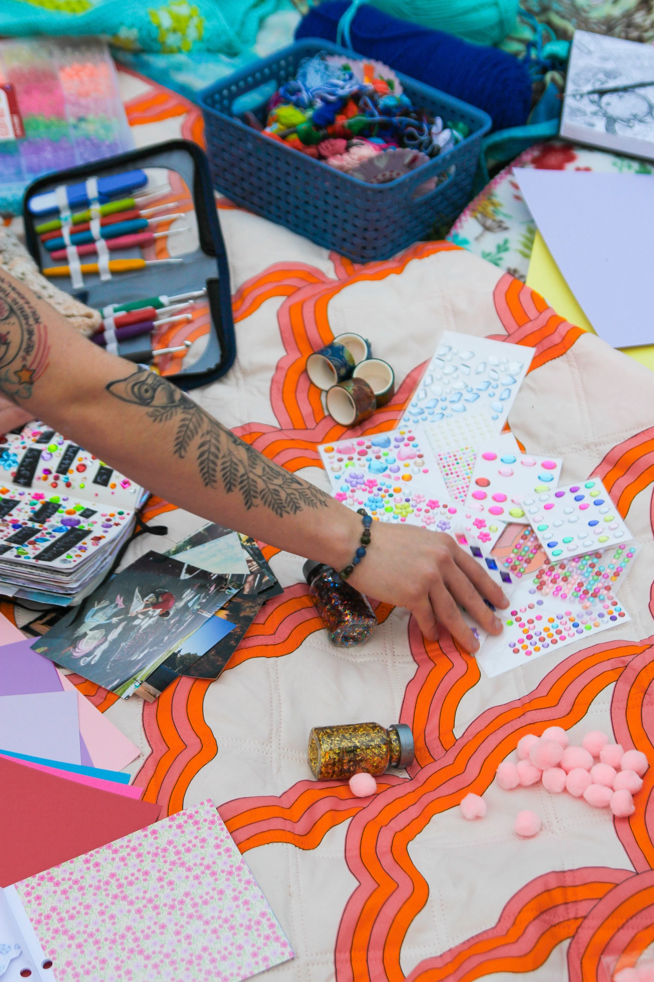The term “crafts” can be defined by anything you make with your own mind and resources, and crafts take on many forms. They can be anything from DIY projects to pre-made kits sold in stores, or junk journaling and making small personalizations to personal items like lighters, clothing, and bags. There are also limitless possibilities to utilize your own preferences in your creations like your favorite colors, symbols, artists, and overall the vibe you want to curate for your art. No matter the form or subtlety, crafting allows you to experiment and explore your own style especially during the busier stages of your life where that might not be a priority.